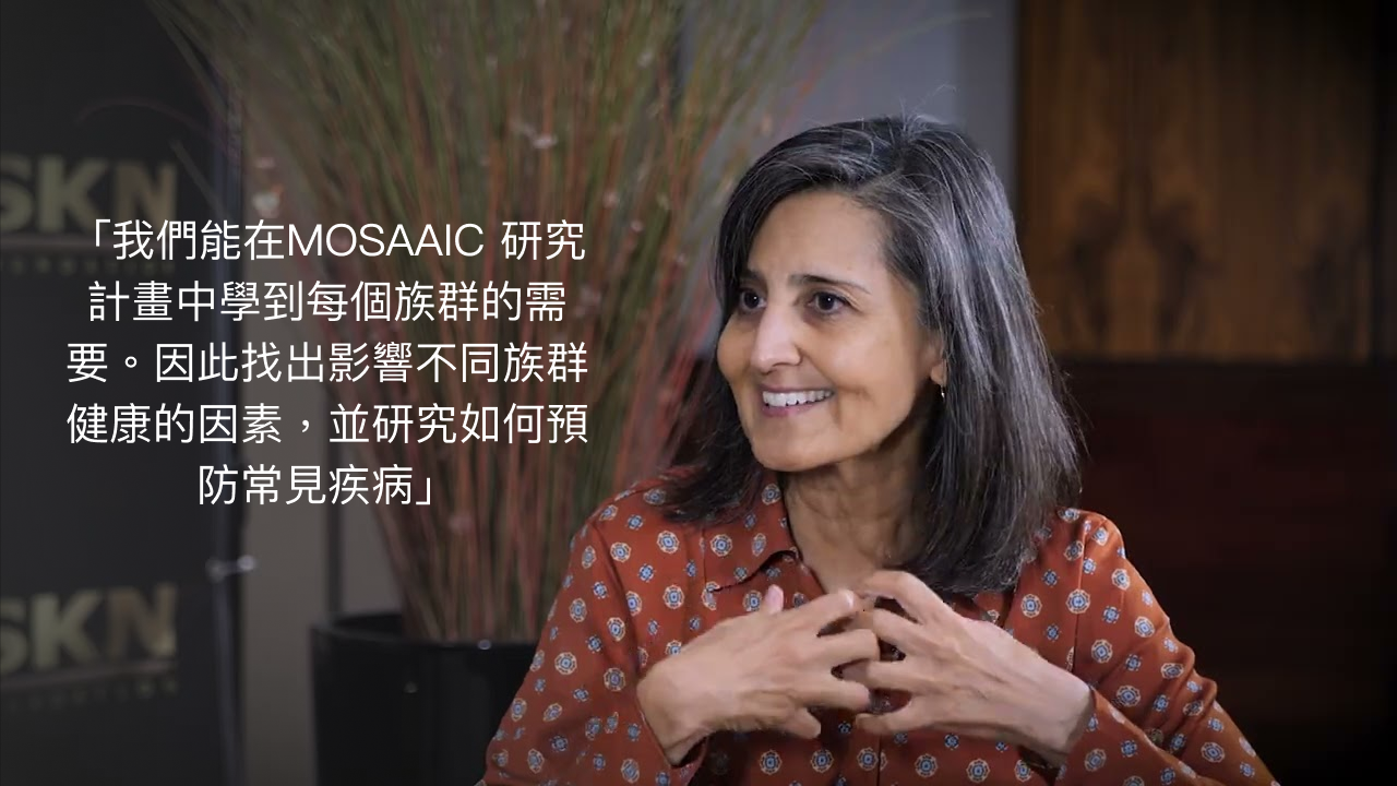 美國亞裔和太平洋島民多民族觀察性研究(Multiethnic Observational Study in American Asian and Pacific Islander Communities - MOSAAIC)是由一支健康研究團隊負責執行,致力於了解該族群心臟、肺部和代謝健康方面的風險與保護因素。